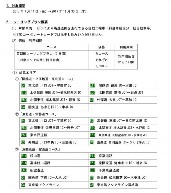 高速道路 定額で2日間バイク乗り放題!