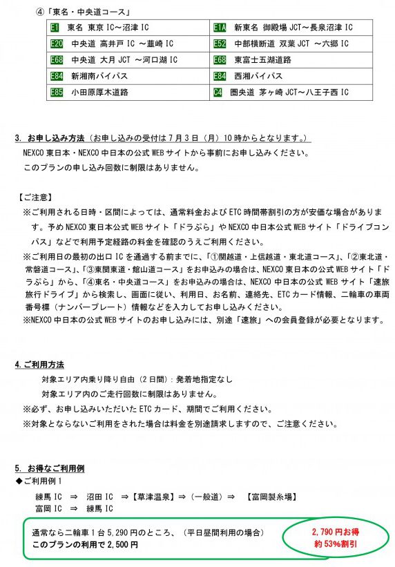 NEXCO中日本のWEBサイトからお申込みください。(7月3日(月)10時から受付開始)
