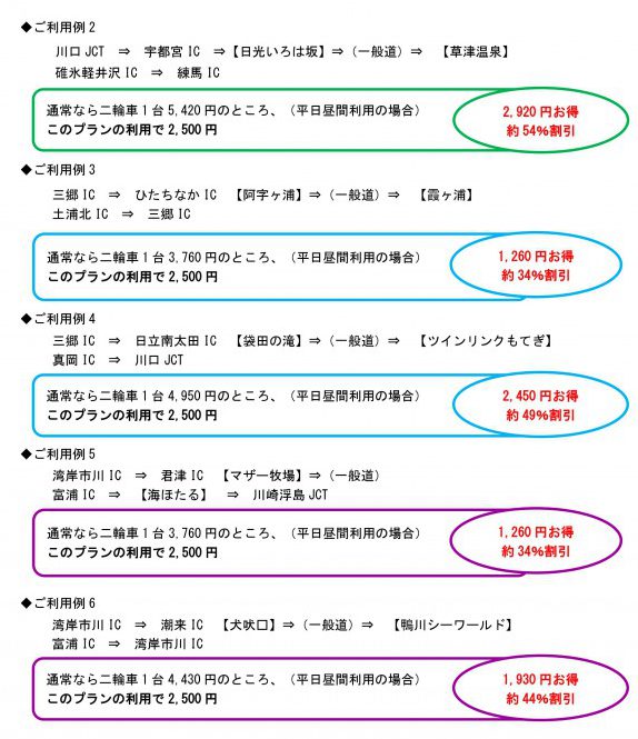 (1)関越道・上信越道・東北道コース 各コースそれぞれ2,500円