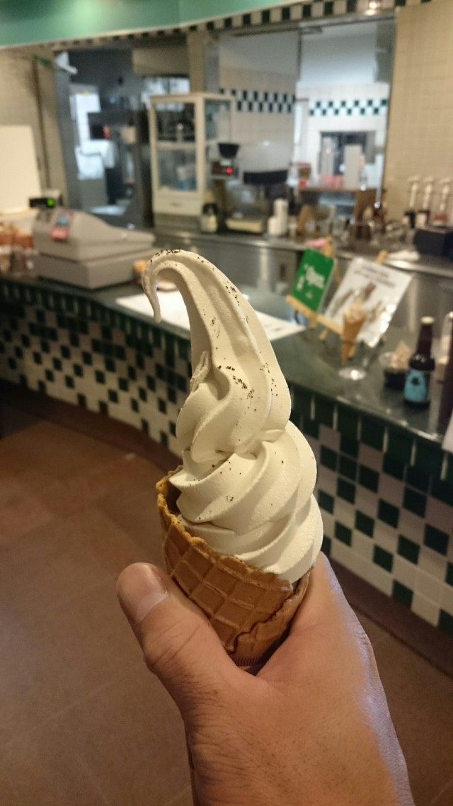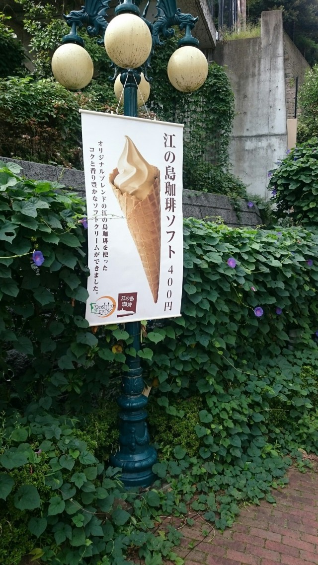 駐車に向かう途中、江の島珈琲ソフトクリームを頬張る。